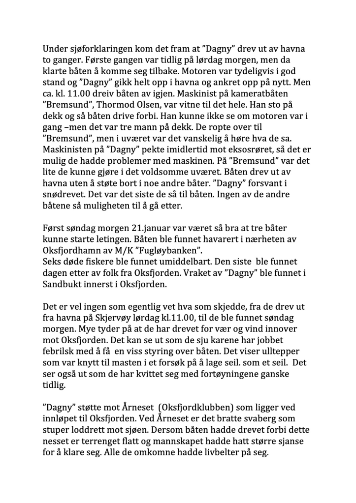 Med å trykke på lenken under kan dere høre reportasjen NRK laget i forbindelse med 70 årsdagen etter «Dagnys» forlis.