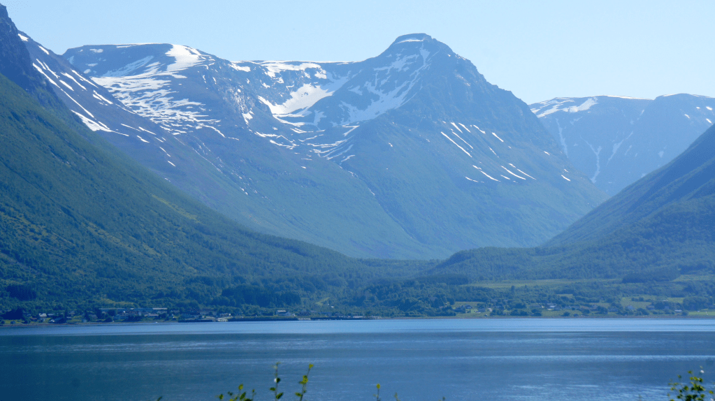 Midt i bildet Rismåltind. Det flate fjellet til venstre er Kistefjell før vi kommer til Skobaidanvarri. Navnet Kistefjell har den fått fordi det ligner på en hvit likkiste fra fjorden, på vinteren. Meg fortalt.
