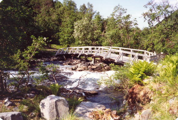 Brua ble første gang bygd i 1936-37 av midler fra staten. Navnet «nederste brua» brukes også av de innfødte. På samisk brukes Bajit og Voulit Sildi om øverste og nederste brua