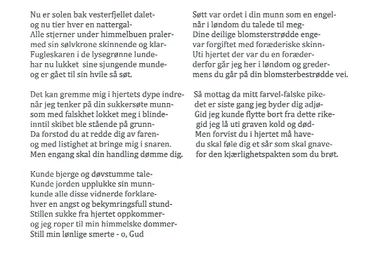 Som avskjed til Lyngen skrev han et dikt til sin kjære Anna:
