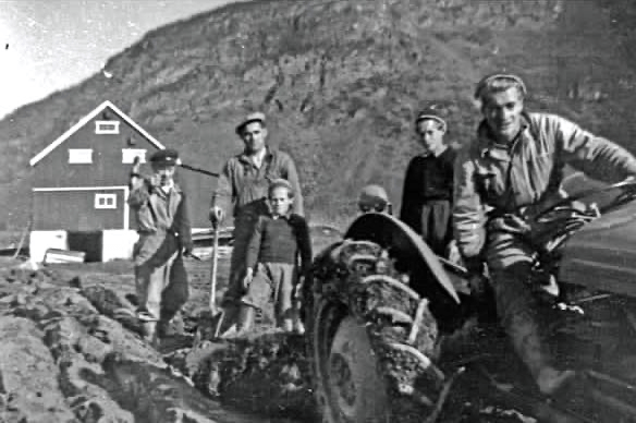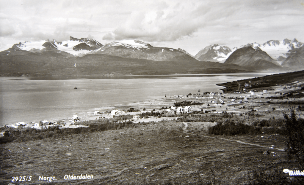 17. mai barn fra Olderdalen. Fra venstre: Signe Vannbakken,(lille jenta bak er ukjent),Solveig Eriksen, foran Kjellaug Bergmo, Roald Eriksen, bak med hvit lue Åse Johansen, Per Pedersen, Lise Sivertsen, Asmund Bergmo, Sverre Albrigtsen, Petter Ola Bergmo og Håkon Bergmo. Bildets eier er Sverre AlbrigtsenLyngseidet 1880-90 med den gamle finnekapellet i venstre forkant av bildetOlderdalen – Lyngenfjord, 1946. Bilde fra arbeiderdelagsjonens tur til Finnmark og Nord- Troms, Opplysningskomiteen for gjenreisningsarbeidet. Medlemmene av komiteen var klubbformenn fra ulike store bedrifter på studietur.Badeliv i OlderdalenØystein og Svein Soleng + avdøde Asgeir Antonsen på telt og fisketur i BártnasavvanSøster Helene Pedersen Suleng.Haldor Lyngmo(Lille) som kugutt. «Lille» var en god keeper og et hopptalent.En av de sterkeste minnene jeg har fra barndommen var denne hendelsen fra januar 1957. Jeg var 10 år og på overnatting hos min bestemor Sofie. Hun hadde sin mann Aksel og sine fire sønner på havet. Derfor var det svært viktig å høre de siste nyhetene før hun la seg på kvelden. Så kom det melding på radio: «DS Orkla» var gått på grunn ved Buholmråsa. Det var storm og dårlig vær og båten var i ferd med å gå ned. Yngste-sønnen Willy på 16 år var ombord. Det ble en natt jeg aldri kommer til å glemme. Det var gråt og bønn hele natta. Neste nyhetssending var kl.07.00 om morgenen, dagen etter. Da fikk vi høre at alle var kommet seg i livbåtene og var i god behold. Her et bilde av «DS Orkla» som er i ferd med å gå ned.Henrik og Marie Olsen med Øyvind Slettvold i matrosdress. Øyvind flyttet siden til Askim der han fikk en sønn som ble norsk mester i spydkast i 1986 med resultatet 76.88 meterMin far Øyvind Soleng som seilte og rodde tilbake til Olderdalen, fra Lyngseidet, da hans søster hadde glemt skoene sine hjemme – før en konfirmasjon.Litt usikker på hva de holder på med. Vi ser helsesøster Valborg sittende på sagstolen. Gudrun Soleng med bøtta og Henny Lindvall helt til høyre. Resten ukjentEt ikonisk bilde fra evakueringshøsten 1944. Båten «Klara» ankommer Tromsø med folk fra Olderdalen.!950?Kan være et bilde fra 1950-tallet. Bilde som er tatt fra Slettveien og viser hvor mye det har grodd igjen på disse åreneSigurd Myrlund var eier av den første traktoren i bygda. Det var en liten revolusjon for jordbruket. Traktoren gikk dag og natt i sesongen. Vi ser Sigurd på traktoren. Bak han står Harald og Sverre Sivertsen, Ukjent og Erling Myrlund.Den gamle skolen i Olderdalen. Påbegynt i 1898. Tatt i bruk som skole i 1902Fra venstre Håkon Olsen, Roald Johansen, Edmund Kristiansen ( bror til forfatter Idar Kristiansen) Liv Kristiansen (søster til forfatteren) Ukjent, Marie med barn jeg ikke kjenner, kanskje lysluggen er Magnor Mathisen. Hva gjør dette bilde på hjemmesida til Olderdalen ? Ja, jeg måtte ta den med siden to av spillerne kom fra Olderdalen. Hjalmar Lyngmo og Svein Soleng i tillegg til Jarle Rundberg, med far fra Langnes.Fløya ble seriemester i 1973 etter 0-0 mot TIL i siste kamp. Sverre Albrigtsen skriver: Under krigen var mange tyske soldater plassert i Olderdalen, og de ble etterhvert ganske godt kjent med befolkningen. En dag kom en soldat og ville ta et bilde av familien min.(far, mor og 10 barn. Han sa til mamma at hun skulle få kopi av bildene. Krigen sluttet, og tiden gikk. 40 år senere kom den tyske soldaten til å tenke på dette bildene. Han fant fram filmrullen, og fikk fremkalt flere bilder fra Olderdalen. Dattera hans skulle på ferie til Nord Norge, og hun tok bildene med seg. Hun stoppet i nabobygda Djupvik og fortalte om sitt ærend. De kjente igjen folket på bildene, og vi fikk dem mangfoldiggjort. I ettertid har jeg rotet bort bildene, så de er igjen som et minne. Mamma var død, så hun nådde ikke å se bildene, men en kan si at soldaten holdt ord. Albrigtsen fikk 8-10 bilder fra krigen i Olderdalen. Dette bildet er publisert ved forskjellige anledninger. De andre er blitt borte. På bildet kjenner jeg igjen gutten til venstre Ragnar Johansen. Nummer tre fra venstre Peder Mathisen. Nummer fem Bjarne Soleng. Ser Jens Johansen bakerst til høyre. Tormod Albrigtsen ved siden av tyskeren til høyre kjenner jeg også. Peder Soleng til venstre og Ole Olsen, Olderdalen til Høyre. Stramme karer.Dagnys forlis i 1951 var en tragisk hendelse som rammet Olderdalen hardt, fire unge gutter mistet livet.Peder A. Bergmo og Anton Antonsen foran stortinget. Skal vedde på at de var der for å tigge penger…Ragnar Johansen og Asmund Bergmo ved OlderdalsvannetSverre Sivertsen har vært en primus motor for det meste i bygda. Lærer, politiker, kultursjef, fotballspiller og leder. osv.«Gammelguttan». Ole Andersen og Stefanus Pettersen med gamle dampskipskaia i bakgrunnen.Gamle fergekaia i Olderdalen. Bygd under krigen (1940-45) av russiske krigsfanger. Fangene ble fraktet med båt til og fra fangeleiren i DjupvikGammelbrua over Olderdalselva. Bygd i 1946. Steiner til brukar ble hentet oppe ved Rypebakken (Slettveien) På bildet ser vi fra venstre : Ardis Olsen, Molund, Ukent veiarbeider og Helene Hansen
