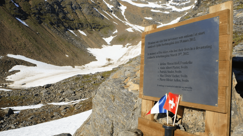 Vil også ta med dette minnesmerket som turgruppa i OJF i samarbeid med Utinord satte opp ved Engenesvannet i Djupvik. Rasulykken i Sorbmegáisá i 2012 krevde fem menneskeliv og rystet hele Norge.