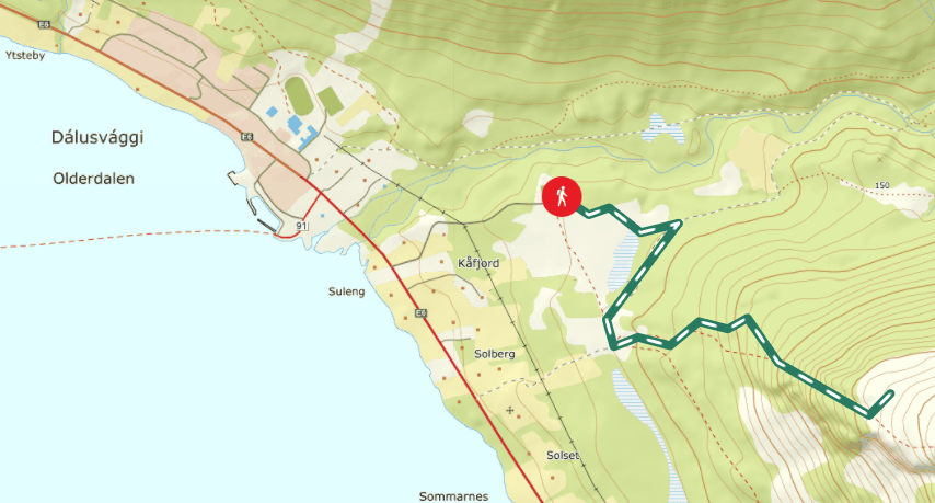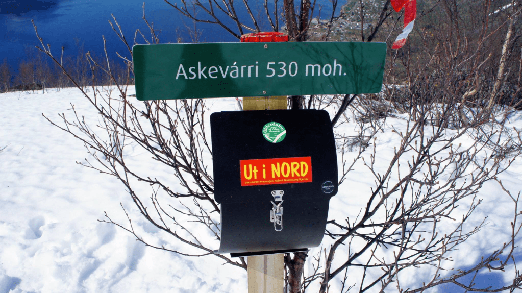 Turen til Askevárri (530moh.) starter fra kirkegården i Olderdalen. Stien er godt merket. Siste del er bratt, men helt ufarlig. Det bratte området har flere navn. Badjegurra = øvreskaret. Boazugurra = reinskaret. Askegurra = litt usikker. Renna = moderne stedsangivelse. Språket er i stadig utvikling, ingen er mer riktig enn andre. Navnet Askevárri betyr slette mellom to fjell. Ser på eldre kart at Askevárri er hele det store fjellet. Vi har gjort det til vår Askevárri (530moh.) Det er ikke galt, men heller ikke helt rett. Vår Askevárri (530moh.)er endel av et større Askevárri.