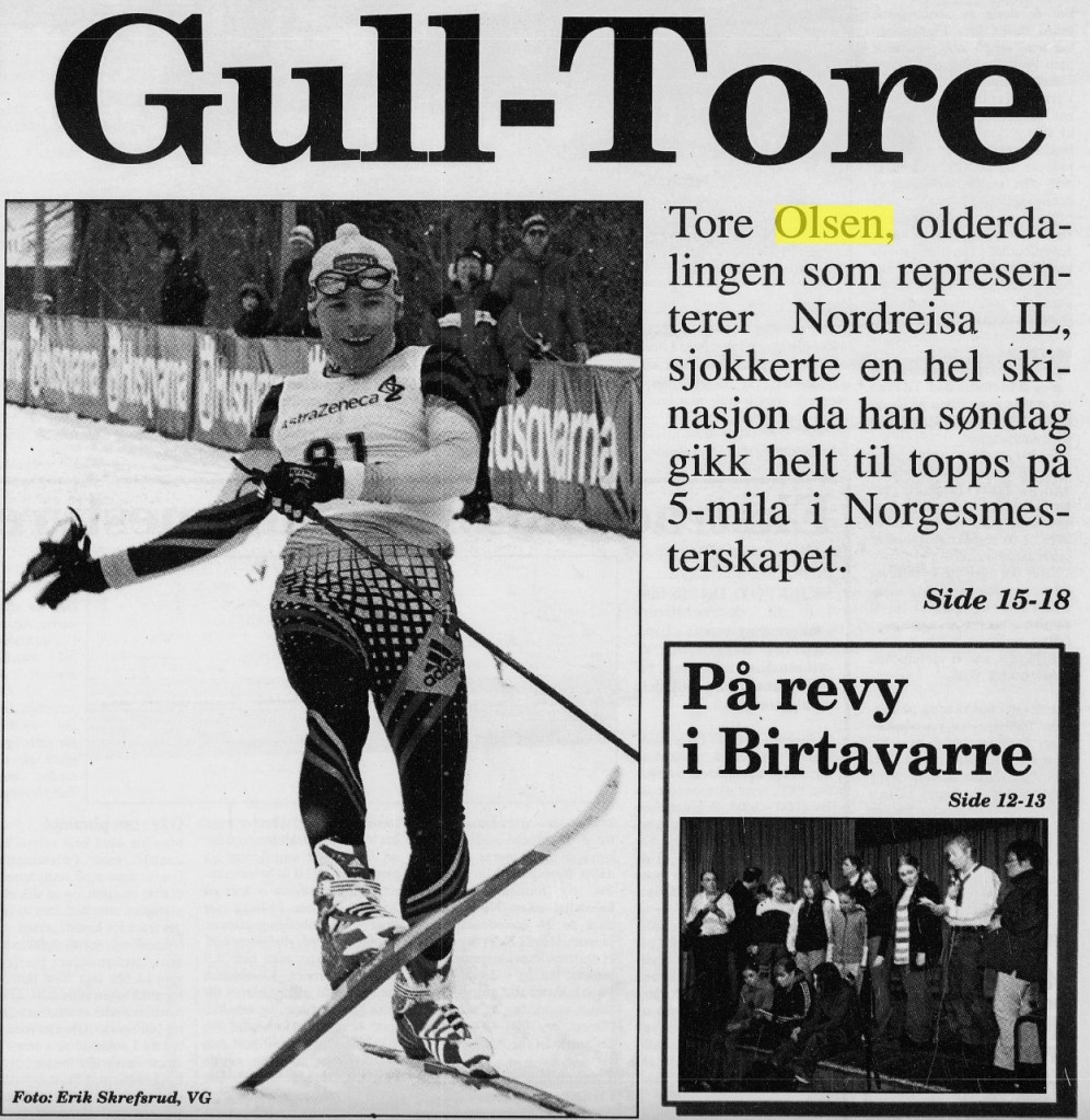 Idrettsfamilien fra Ysteby, Tore, Kjetil, Even og Gunnhild Olsen hevdet seg godt i mange idretter. Tore og Even var med på det berømte stafettlaget som tok 4. plassen i NM-stafetten for Olderdalen IK i 1994.