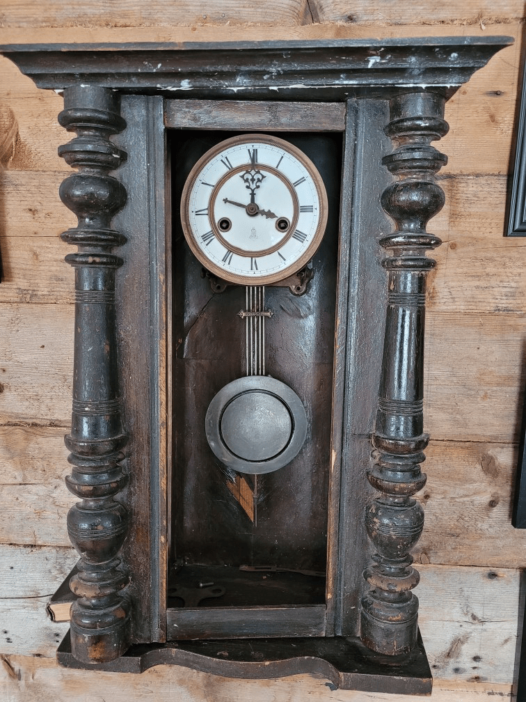 Dette vegguret tilhørte Johan Mathisen (Jossa). Baksida av uret viser at den er produsert i 1915. Johan kom hjem med dette vegguret omkring 1920. Uret hang på veggen i oldefars hus i mange år. I 1944 da familien evakuerte ble klokka gravd ned i en potetåker. Pakket godt inn i en striesekk. Etter krigen ble klokka gravd opp. Alt av trematerialet var ødelagt, men selve urverket fungerte godt. En lokal snekker laget ny ramme og klokka tikket og gikk til begynnelsen av 1960-tallet. Da var det stopp. Jeg fikk uret av «Jossa» i 1964. En urmaker vurdert at reparasjonen ville være så omfattende at det ikke ville lønne seg. Eier idag er Arnfinn Soleng.