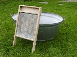 Datidens «vaskemaskin»..eg huske modern stod i kjellarn og fyrte i ovnen der en heil dag og kokte vann i store kasserolla for klesvask. Å kor ho skrubba og banka og gnikka på det fordømrade brettet..bremsespor og gulna armkroka blei krittkvit igjen..og ut bar det til tørking uansett om det var 20 minusgrader eller knallsol på sommarn..eg huske enkelte ganga på vinteren så måtte ho brekke laken og klær ned fra snora..og bestandig i barnævva..ja by et sånt arbeid til noen i dag..så får du pinade lensmainn på døra..