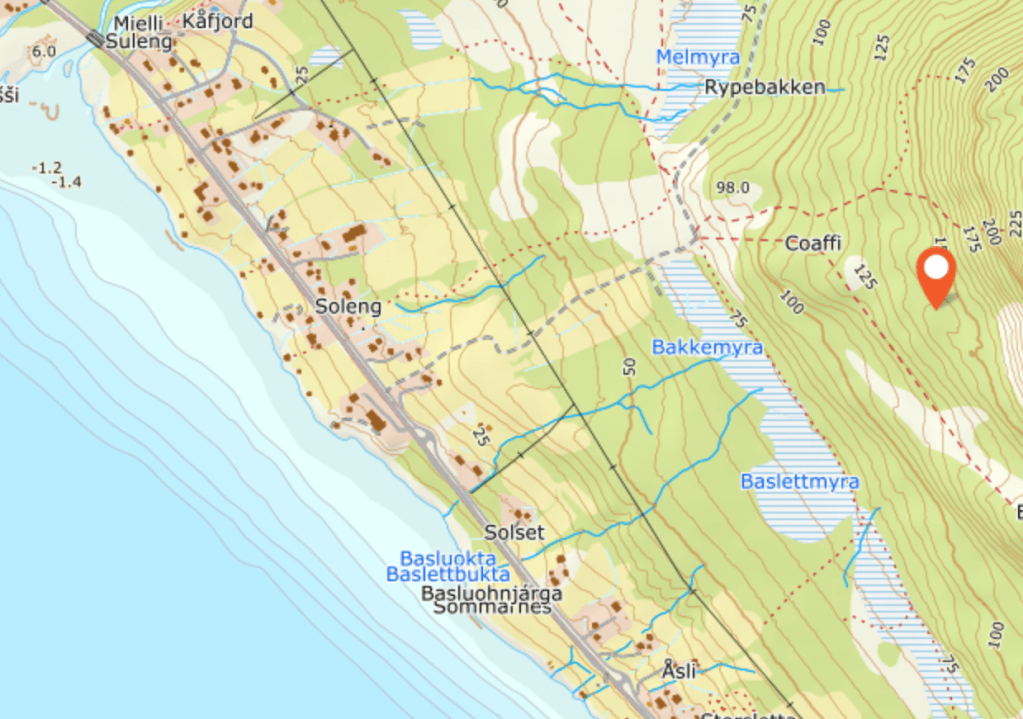 Korndyrking tok seg veldig opp på midten av 1850-tallet. Det ble gjort forsøk med hvete, rug og bygg. Det viste seg at bygg var den kornsorten som trivdes best i våre forhold. En smarting fant ut at like under fjellet var det gode forhold for å få ruget modnet. Derfor opparbeidet han en åker, som vist på kartet. Hvordan det gikk med prosjektet står det ingen ting om. Stedet har fått det norske navnet Rugåkeren. Selv om min far alltid brukte det samiske navnet «Rohkabeldo». Sisteleddet-beldo kommer fra det kvenske navnet ´peldo´ som betyr ´åker´. Mens ´rohka´ på samisk betyr mat. Mulig vi har en sammenblanding mellom kvensk og samisk. Skrivemåten på kvensk vil være Ruispeldo = Rugåkeren.