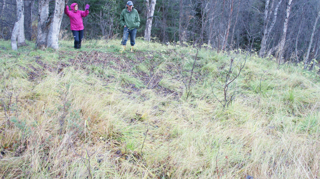 Her finnes flere hundre år gamle tufter. Noen ligger midt inne i plantefeltet, andre like utenfor.