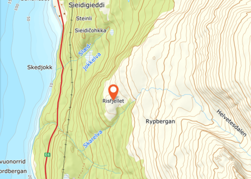 Navnet Risfjell, Rismåltind, Rismålhaugen osv. finner vi flere plasser i kommunen og landet forøvrig. Fra gammelt av var døgnet delt inn i seks mål eller tid. Midnatt 0000-0400 / Rismål 0400 – 0800 / Turmål 0800 – 1200 / Middag 1200 – 1600 / Noen 1600 – 2000 / Nattmål 2000 – 2400. Navnet Ris ble til når sola sto over fjellet mellom kl.0400 – 0800. I det her tilfellet skinte sikkert sola nede på Sieidigenta på den tiden. Navnet Rismål stammer helt tilbake til vikingtida da døgnet var delt opp i 8 himmelretninger. Risfjellet er en av Utinords mest populære turstiene i Nord Troms.