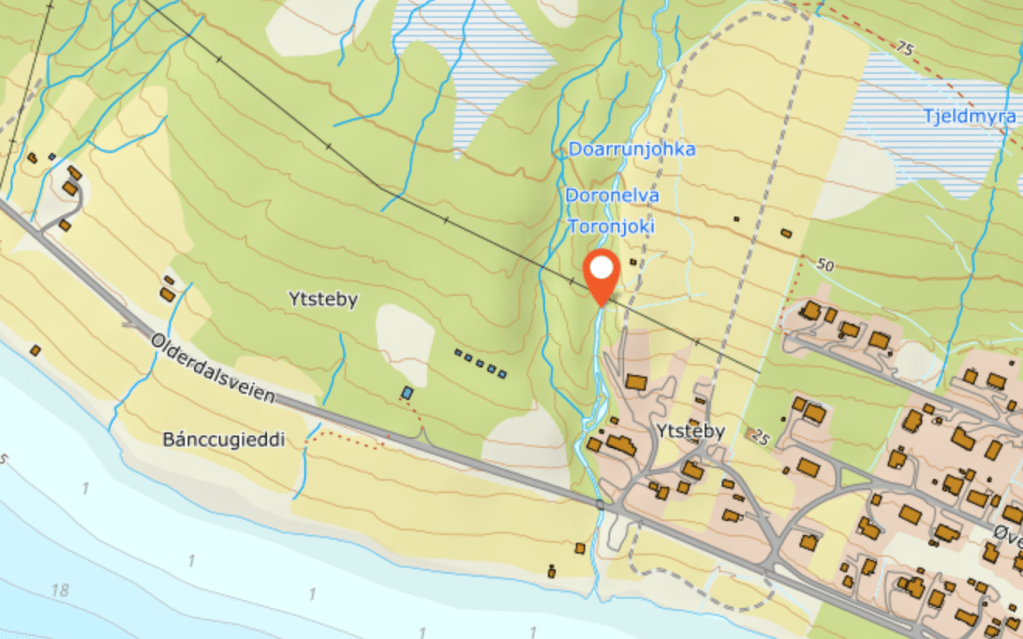 Doronelva starter øverst i Lilledalen mellom Giilavárri og Nordmannviktind.