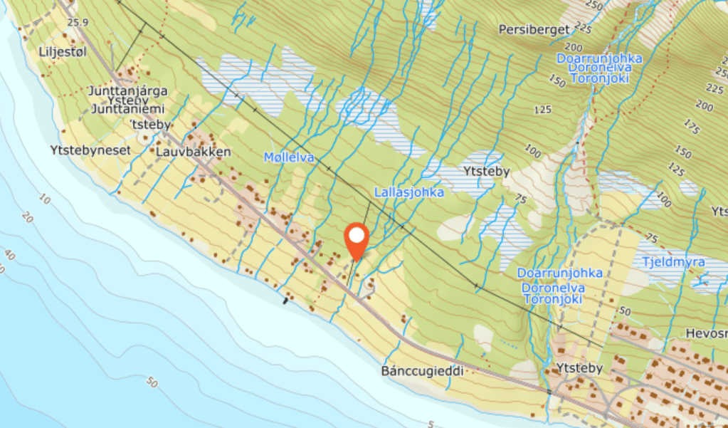 Mange små bekker som samler seg til ei større elv før den renner ut i sjøen.