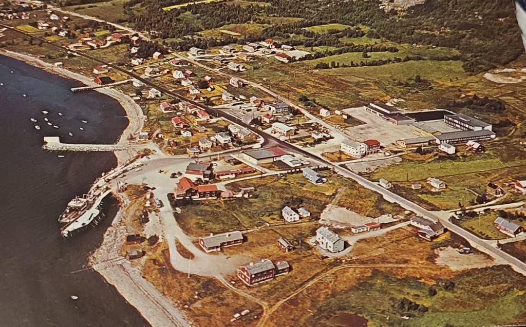 Odd Arvid Nilsen fikk dette postkortet i 1977. Bildet må med andre ord være før 1977. I området fergekaia, hotellet dannes det et nes som heter Olderneset. Et navn som ikke brukes lenger.