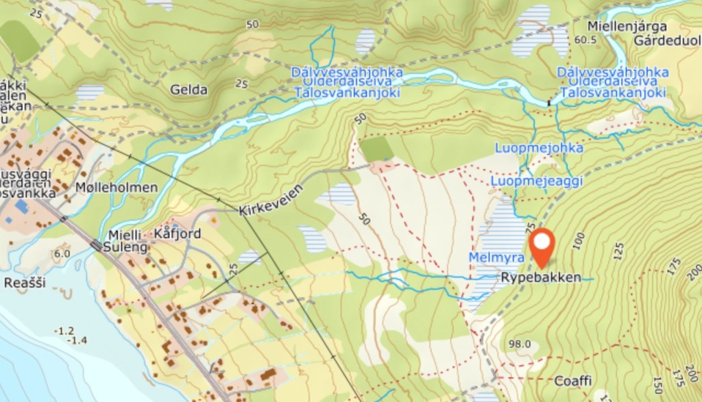 Like etter krigen ble Rypebakken sprengt opp for å skaffe fundamenter til brua over Olderdalselva og til Olderdalen kirke. Steinblokkene ble fraktet med hest over myra og ned til byggeplassene.