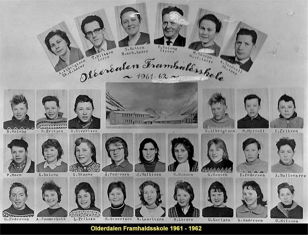 Året 1961-62 gikk en fin gjeng ungdom ut av framhaldsskolen i Olderdalen. Kanskje den fineste som noen gang har gått på den skolen!