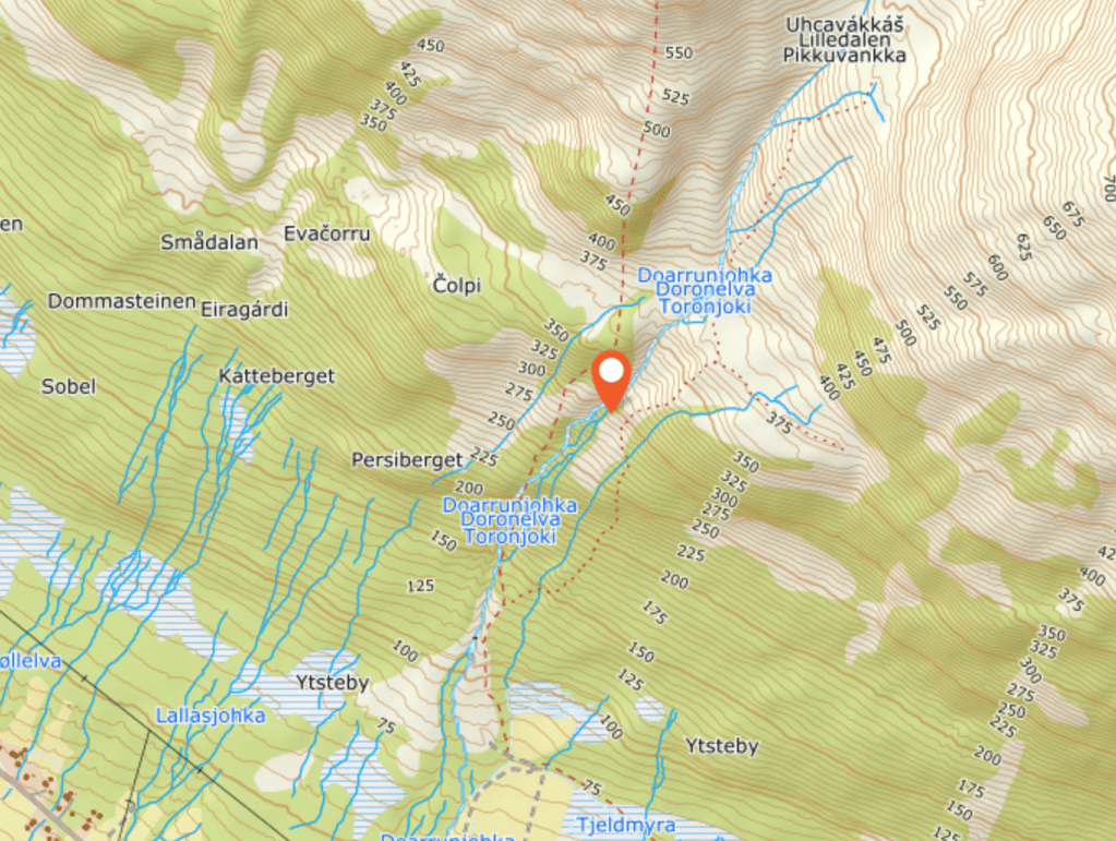 På norsk Lilleberget, ligger i en fjellside ved Koršša ved Toronjoki.