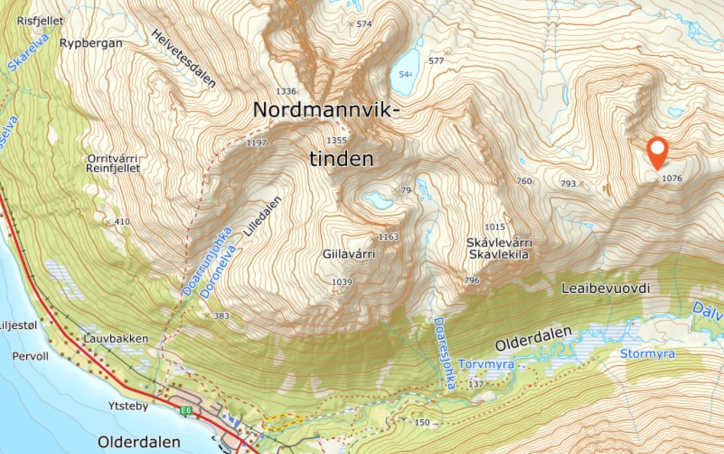 Qvigstad skriver Skoabaidamvarre som på norsk betyr Skramlefjell.