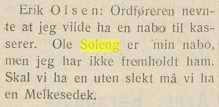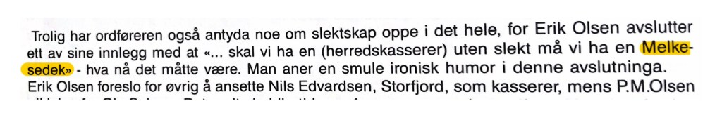 På et herredstyremøte i Kåfjord fra 1930 ser vi at min bestefar Erik brukte fremmedordet Melkesedek. Herredstyremedlemmene fra den gang klør seg enda i hodet og lurer på hva han sa..