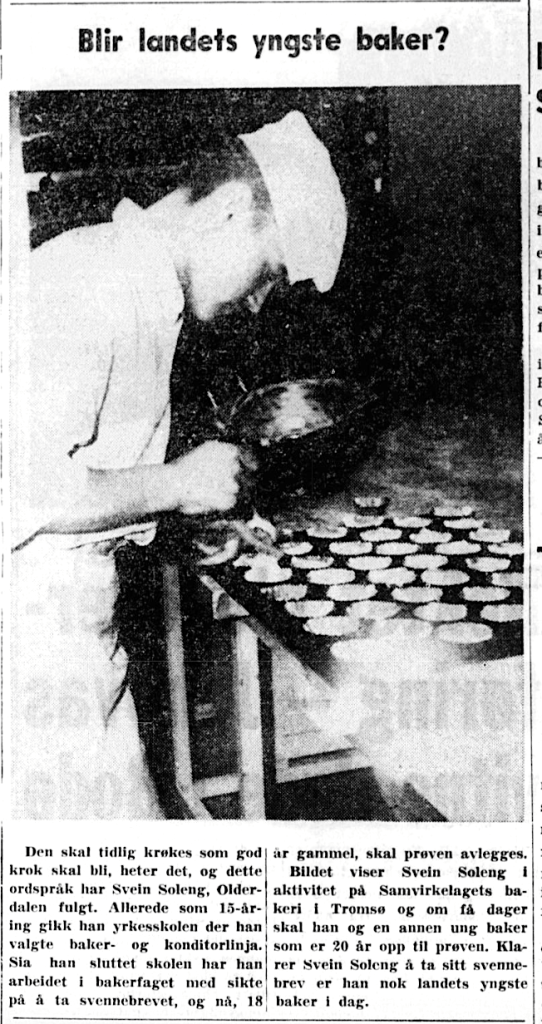 Avisintervjuet er gjort i forbindelse med min svenneprøve. Prøven gikk bra og jeg fortsatte i 16 år som baker og konditor. Tittelen «Norges yngste baker» har jeg blitt konfrontert med mange ganger i ettertid.