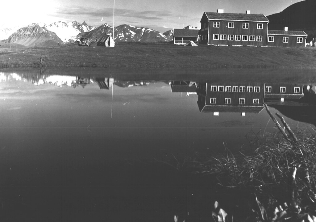 Unikt bilde av hotellet i Olderdalen. Med leibodammen i forgrunnen, helt fantastisk.
