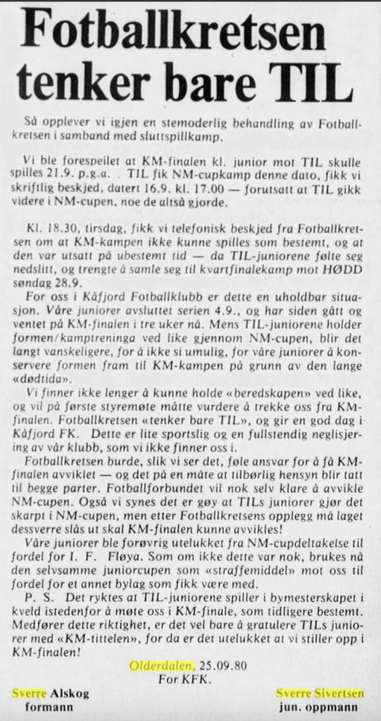 Sverre var opptatt av rettferdighet i alle sammenhenger. Blant annet mente han at fotballkretsen drev med forskjellsbehandling der by-klubbene alltid ble favorisert. Jeg har gått igjennom de fleste protestene fra den gang og kan til dels være enig med Sverre.