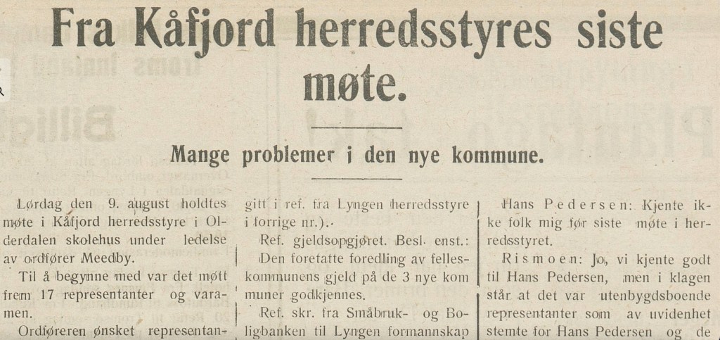 Dette er deler av referatet fra det første offisielle møte i den nye kommunen.