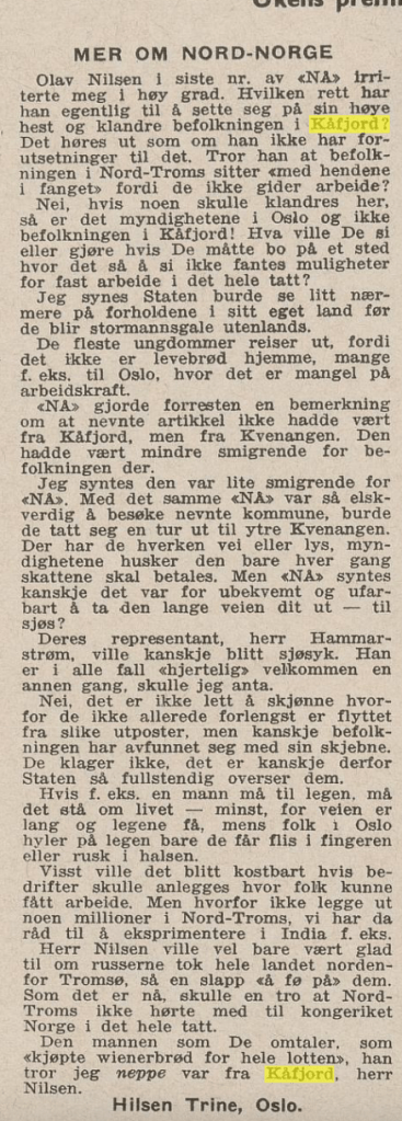 Leserinnlegg i Bladet NÅ nr. 25,33 og 41 1961