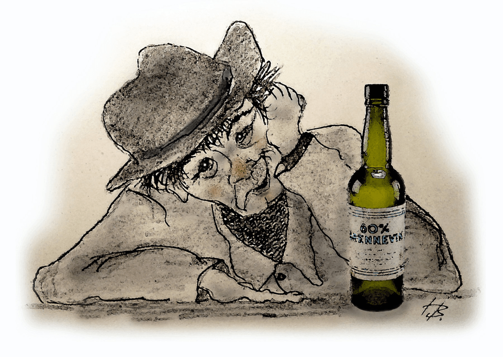 For en stund siden dukket denne opp på sida til «Gamle Nord-Troms»: En drikkevise som sies å ha sitt utspring i regionen. – Ikke vet jeg, den kommer kanskje like gjerne langveis fra, for over hundre år siden. F.eks. den gangen da gruveslusker fra hele Norden: kvener, finner, svensker, samer, nordmenn og noen russere, sleit under besværlige forhold i malmgruvene i Birtavarre-fjellene. Teksten går rett på, uten filter, og er muligens litt «på kanten» for sarte sjeler. Men om ikke annet så inspirerte den hobbyillustratøren til å finne fram tegnesakene. God helg (men husk: det er ikke nødvendig å ta oppfordringen i denne sangen bokstavelig).