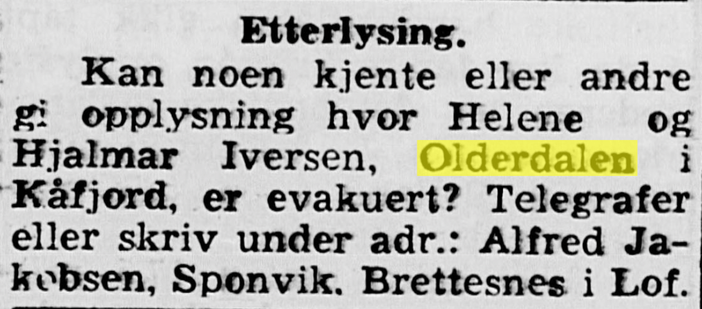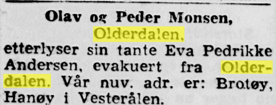 I avisene under og etter krigen finner jeg mange etterlysninger etter familiemedlemmer. Her noen eksempler.