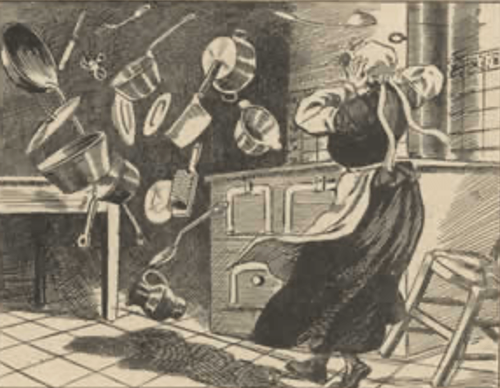 Kona la ikke så stor vekt på det han sa. Men, da han gikk tok ho gloa av ovnen og heiv etter ham. Da sier mannen: «Du behøve ikke, du får besøk» Husmora svare da på finsk: «Har du finsk blod, så har jeg også finsk blod».