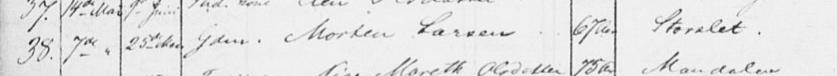 Helene Marie Hansdatter giftet seg i 1854 med Morten Larsen, Storslett. Morten Larsen er 60 år og Helene er bare 28. Etter 8 års ekteskap dør Morten.