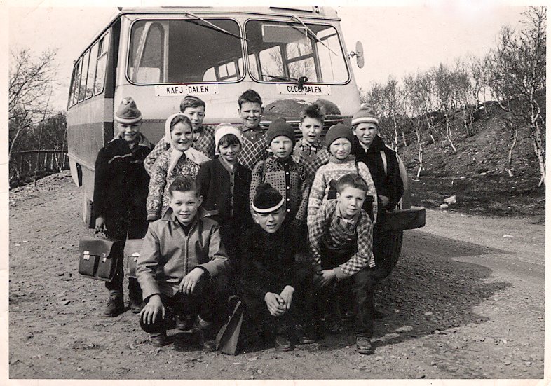 Skoler legges ned, nå som før. Nordmannvik og Djupvik skolekrets blei slått sammen i 1959, og elevene fra Nordmannvik flyttet til nybygd skole i Djupvik. Her er noen av elevene samla foran skolebussen, som også gikk i lokaltrafikk. Bussjåfør Einar Olsen fra Sørkjosen tok dette fine bildet. For noen år siden ble også Djupvik skole lagt ned…..