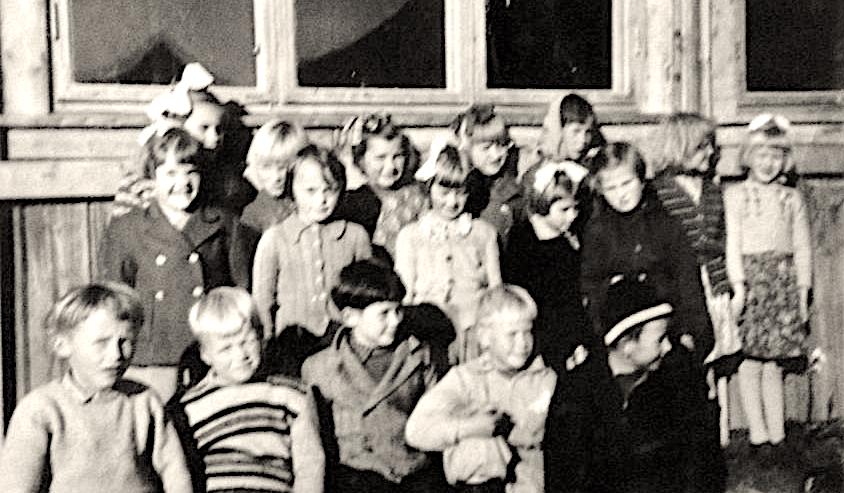 Navn: Fremste rekke fra venstre: Odd Sivertsen, Svein Soleng, Alf Ballovarre, Kjell Albrigtsen, Gunnar Hansen Li. Midterste rekke fra venstre: Karin Berg, Gerd Andersen, Britt Larsen, Britt Johansen, Randi Sivertsen. Bakerste rekke; Liv Eriksen, Gunn Hansen, Anne Sommerbakk, Guri Soleng, Judith Mathisen, Margot Soleng, Kjellaug Bjuri. Etternavnet er det hver enkelt hadde i 1 klasse…Bildets eier: Liv Eriksen.