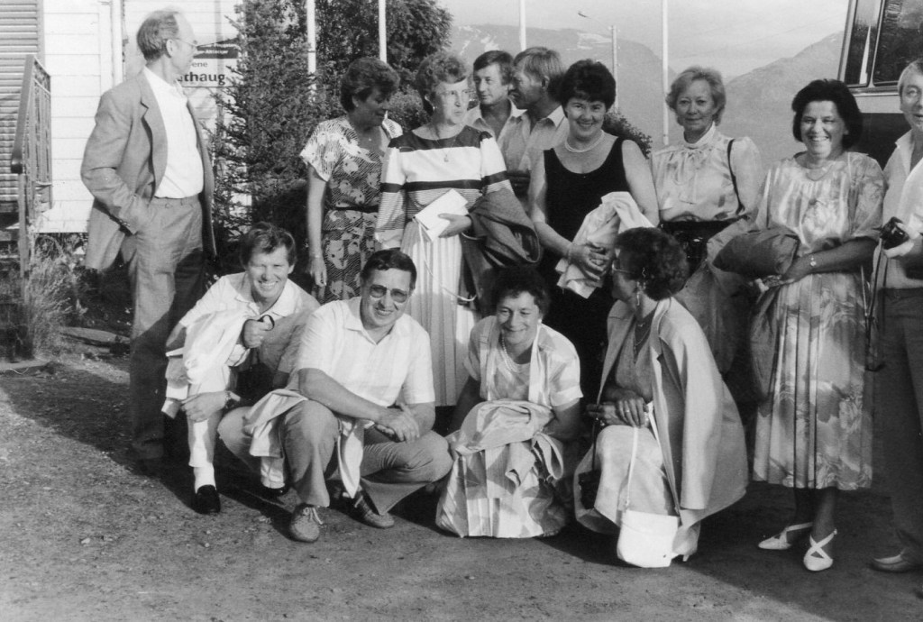 Framhaldsskoletreff sommeren 1994 (tror jeg det var, de som husker bedre må korrigere meg). Altså 40 år (?) etter at vi forlot skolepultene våre på Trollvik skole. Læreren vår den gang, Kåre Martinussen, står bak og holder et våkent øye med podene sine. Bildet er tatt utafor Alskogs Gjestgiveri i Olderdalen for vi skiltes etter en busstur Olderdalen- Holmen-Kåfjorddalen-Trollvik skole-Olderdalen, og bevertning på Alskog. Fotograf var vår bussjåfør, Peder Skogvang. Som vi husker fra et tidligere bilde på denne sida av framhaldsskoleelevene ved Trollvik i 1952-53 var vi da 26 stykker til sammen, mens vi her er bare 12 stykker. Det passa dessverre ikke for alle å delta.