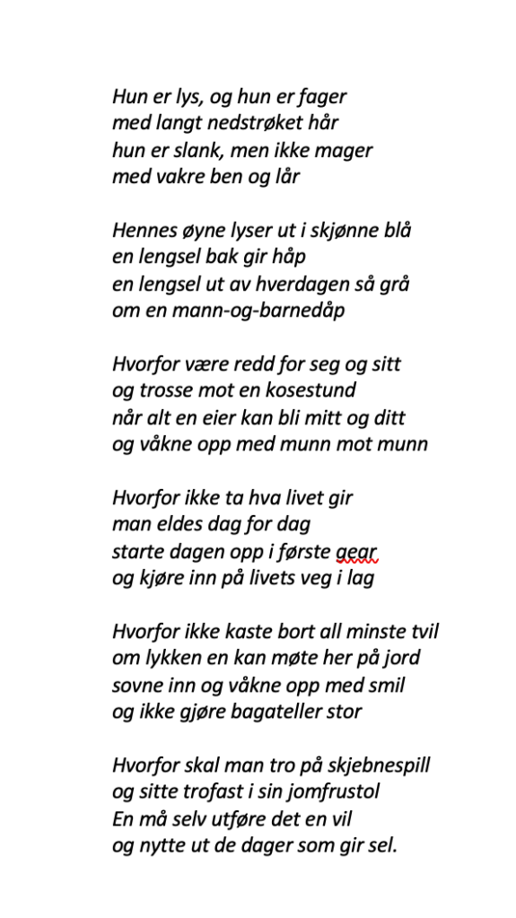 Et dikt Sverre Albrigtsen skrev til Dagrun, som i dag er kona til Per Pedersen i forbindelse med et eller annet. Husker ikke! April 1971