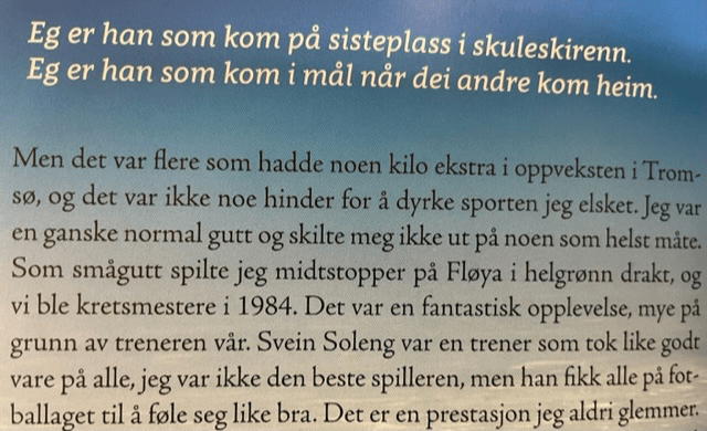 I 40 år har jeg drevet frivillig arbeid. Først som trener i aldersbestemte klasser i Idrettsforeningen Fløya. Deretter som tilrettelegger for friluftsliv. Og de siste årene som redaktør for min egen hjemmeside, bygdavar.com. Ei hjemmeside der jeg i hovedsak prøver å ta vare på kulturen og lokalhistorien vår. Noen priser og mye ros har det blitt , men at jeg skulle få et avsnitt i boka til Truls Svendsen hadde jeg aldri drømt om. Det satte jeg umåtelig stor pris på.