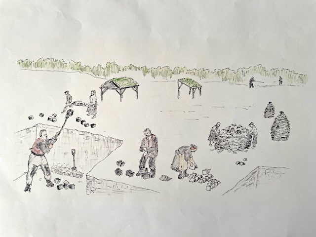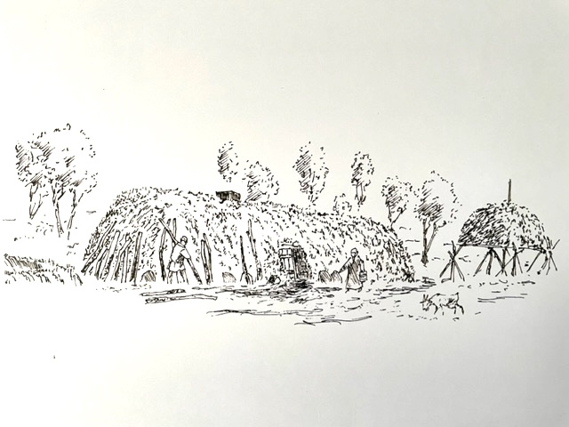 Nyslåtte gresset ble banket mot stein.