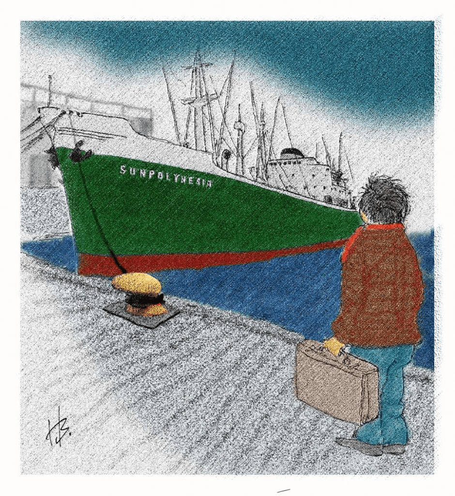 Liten gutt. Stor båt