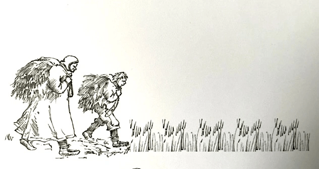 Gjøres klar til å bære ned til bygda