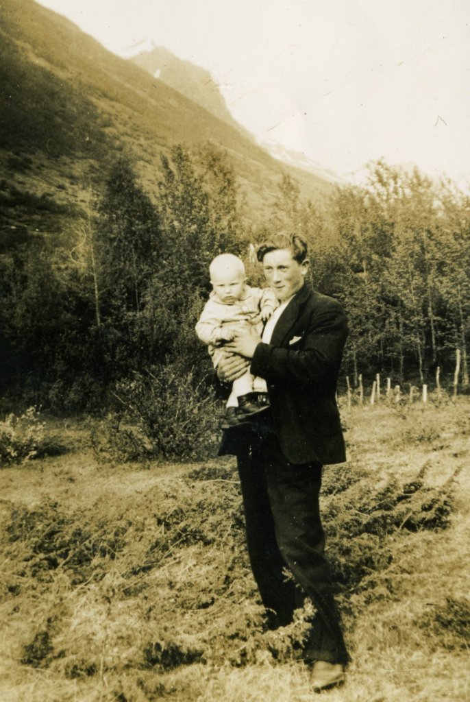 «Hjalmar i Gropa» var første mann til Ida Lillevik. Litt usikker, men det kan være datter Ellinor han bærer på.