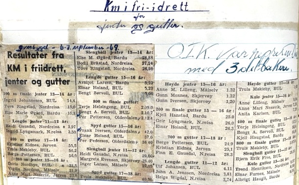 Legger ut noen resultater fra Franks tid i Olderdalen Idrettsklubb.