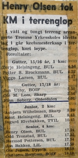 Kretsmesterskap i terrengløp 1967. Finn Are Søberg, Olderdalen nr. 3 i klasse 17-18 år.