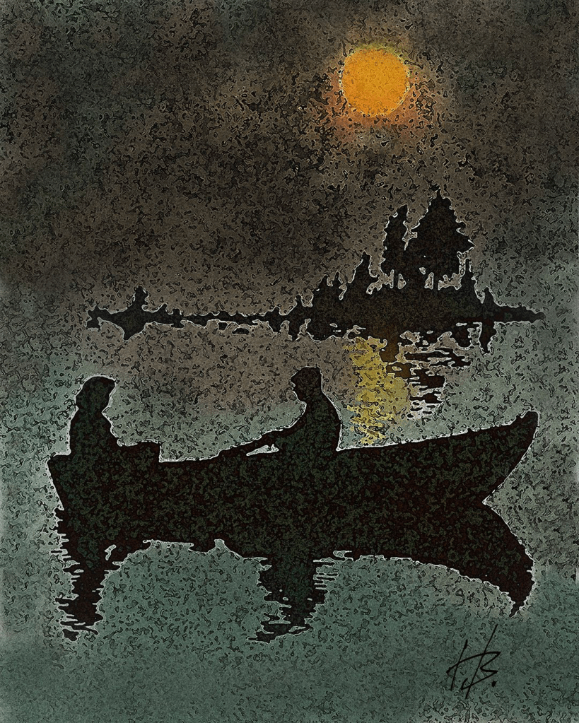 Noen var ute etter ferskvannskreps, noen lå kanskje og sov på hemsen, disse to la beslag på «Lusa», den lille robåten. Dette var en typisk mørk og varm sommernatt på innsjøen Lyseren ute i Enebakk på 60-tallet. Vi som var hybelboere fra nord i hovedstaden den gangen, var faste gjester på «Håløygheimen» omtrent hver eneste helg.