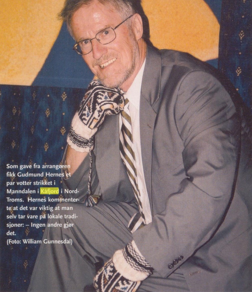 Mangeårige statsråd Gudmund Hernes i Mandals-votter