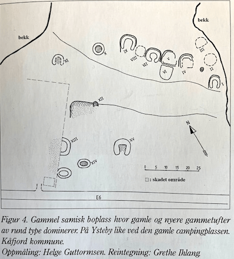 Kart over gammel bosetning på Dorronbakken. Da campingplassen ble anlagt forsvant en god del gammer.