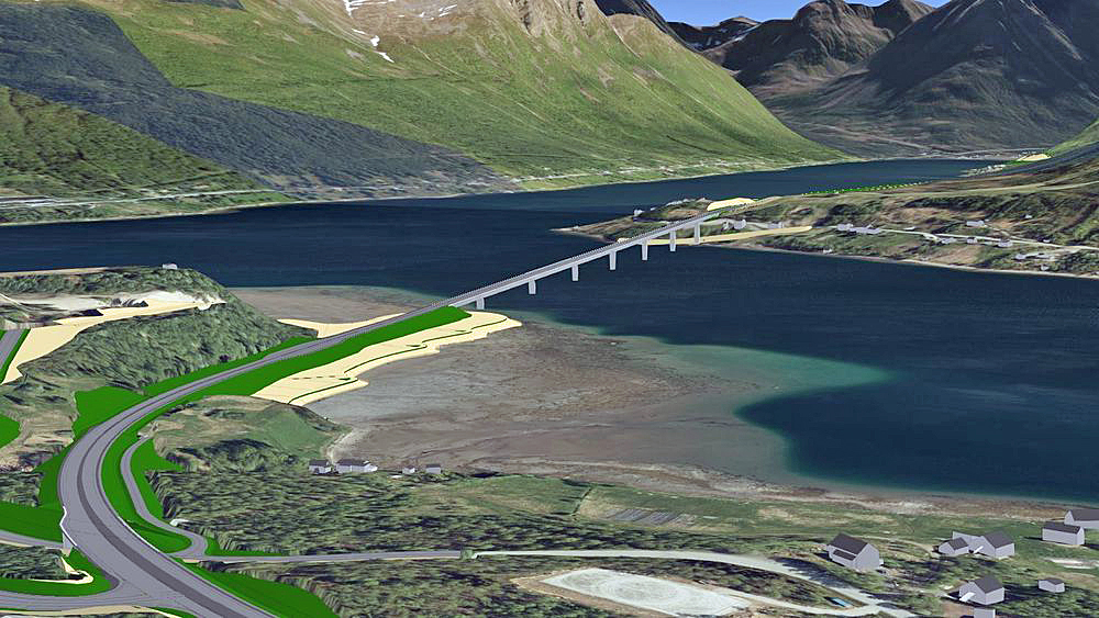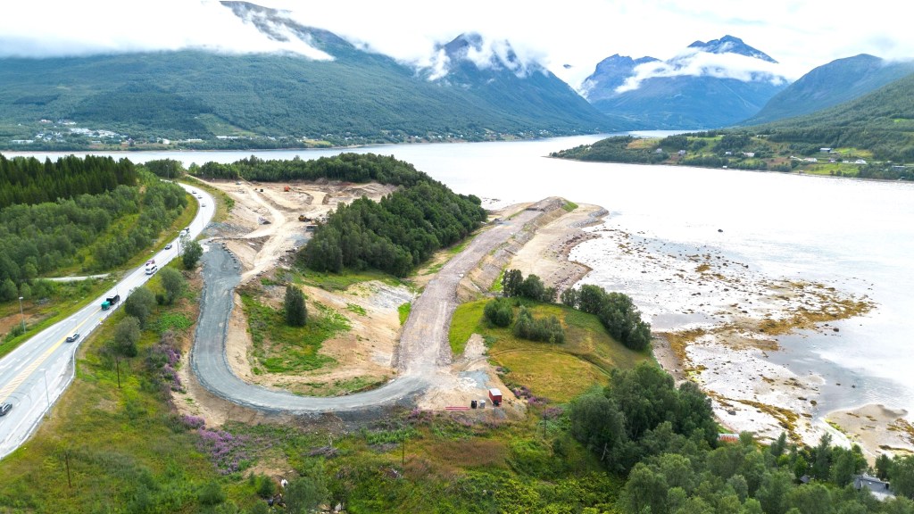 Her bygges ny bru over Ramfjorden. https://www.vegvesen.no/vegprosjekter/europaveg/ramfjord/ Foto: Nordlys