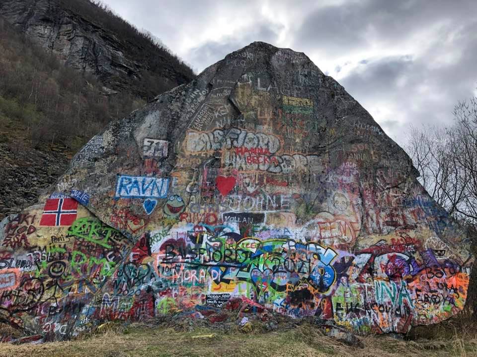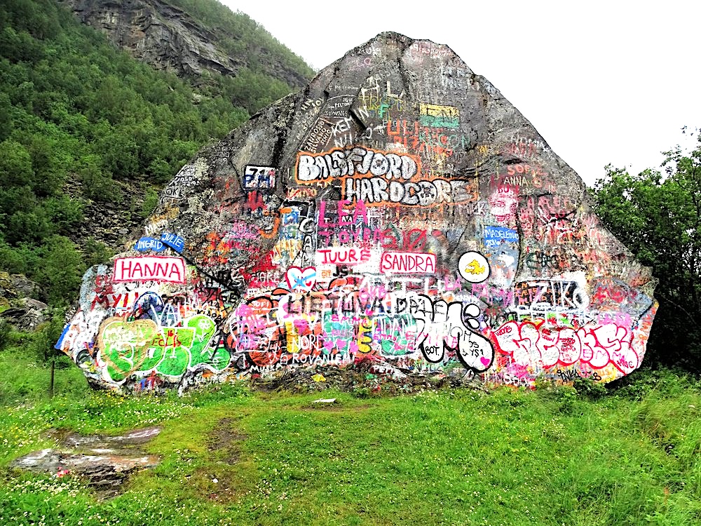 - Et nyere eksempel hvor to personer, kanskje et par eller gode venner, har risset inn sine initialer sammen med årstallet. Dette illustrerer hvordan Piggstein fortsatt er et populært sted for moderne reisende å sette sitt preg.