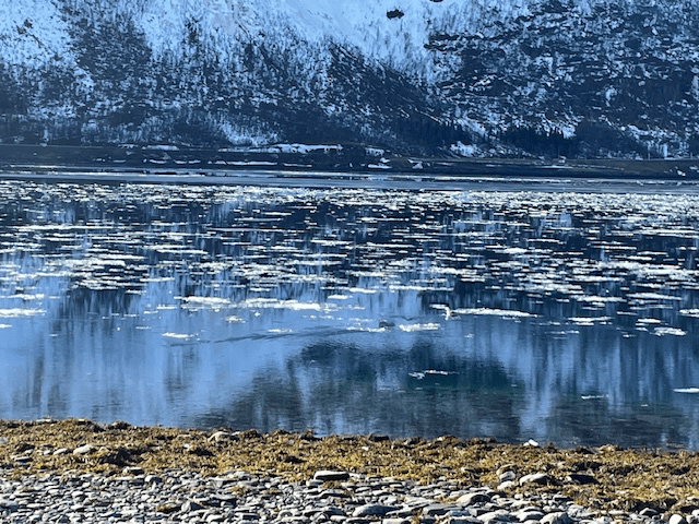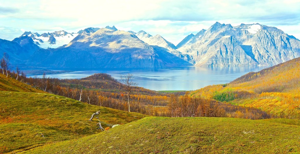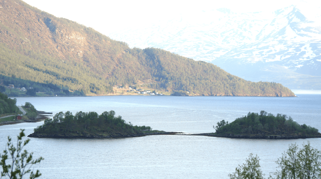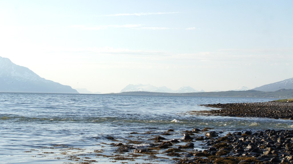 Vi ser Nordnesodden med Lyngsalpene i bakgrunnen. Foto: Svein Arild Soleng