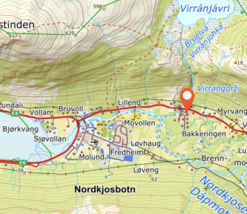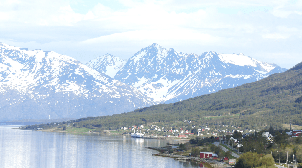 Vi ankommer Nordkjosbotn eller Vollan. Vollan Gjestestue er velkjent for sine deilige husmannsretter og koselige atmosfære. Ikke glem å prøve softisen fra Trekantkiosken – den er visstnok en favoritt blant reisende. Om du er interessert i ølbrygging, er det også spennende å vite at bryggeriet Mack har et produksjonsanlegg i området. Dette gir virkelig en god blanding av matopplevelser og lokal industrihistorie!