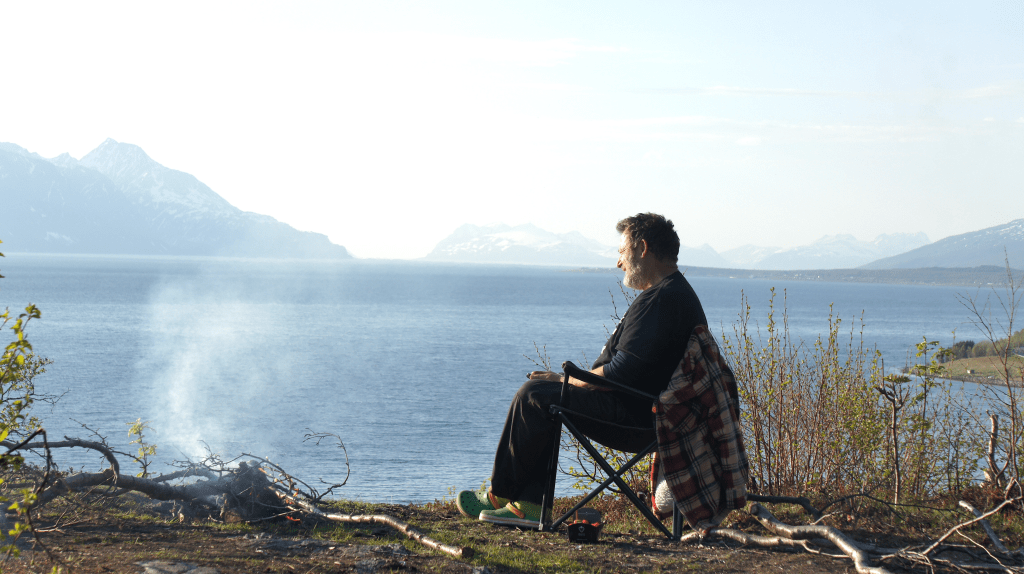 En tysk turist nyter sola på Kåfjordbergan. Foto: Svein Arild Soleng