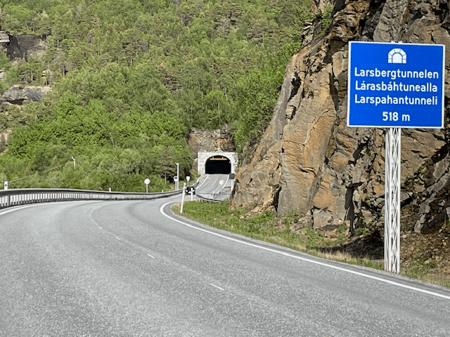 Etter noen kilometer kommer vi til den 518 meter lange Larsbergtunellen. Når vi kjører ytterligere 4 km, ankommer vi et område som fikk stor oppmerksomhet etter 2. verdenskrig. Det var hit Jan Baalsrud ble fraktet etter at han forlot Furuflaten.